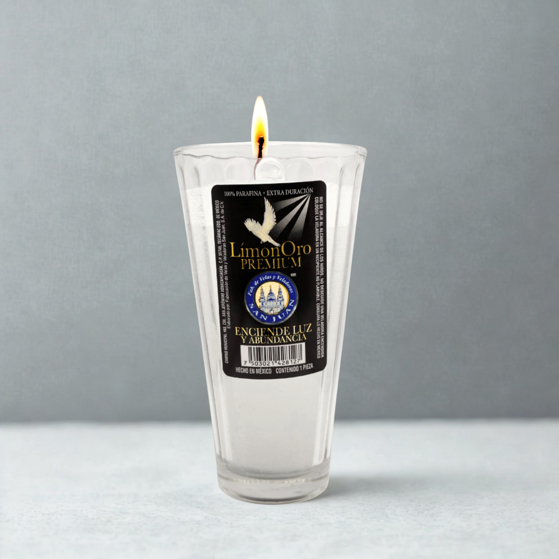 Caja de veladora San Juan Limonero Premium, contiene 20 piezas, vaso de vidrio, excelente opción para quienes buscan una vela de oración con un aroma delicioso y revitalizante. El aroma a limón y naranja es ideal para crear un ambiente de optimismo y alegría, la veladora está hecha de parafina china refinada y tiene una mecha de algodón. La cera tiene un aroma exquisito.
