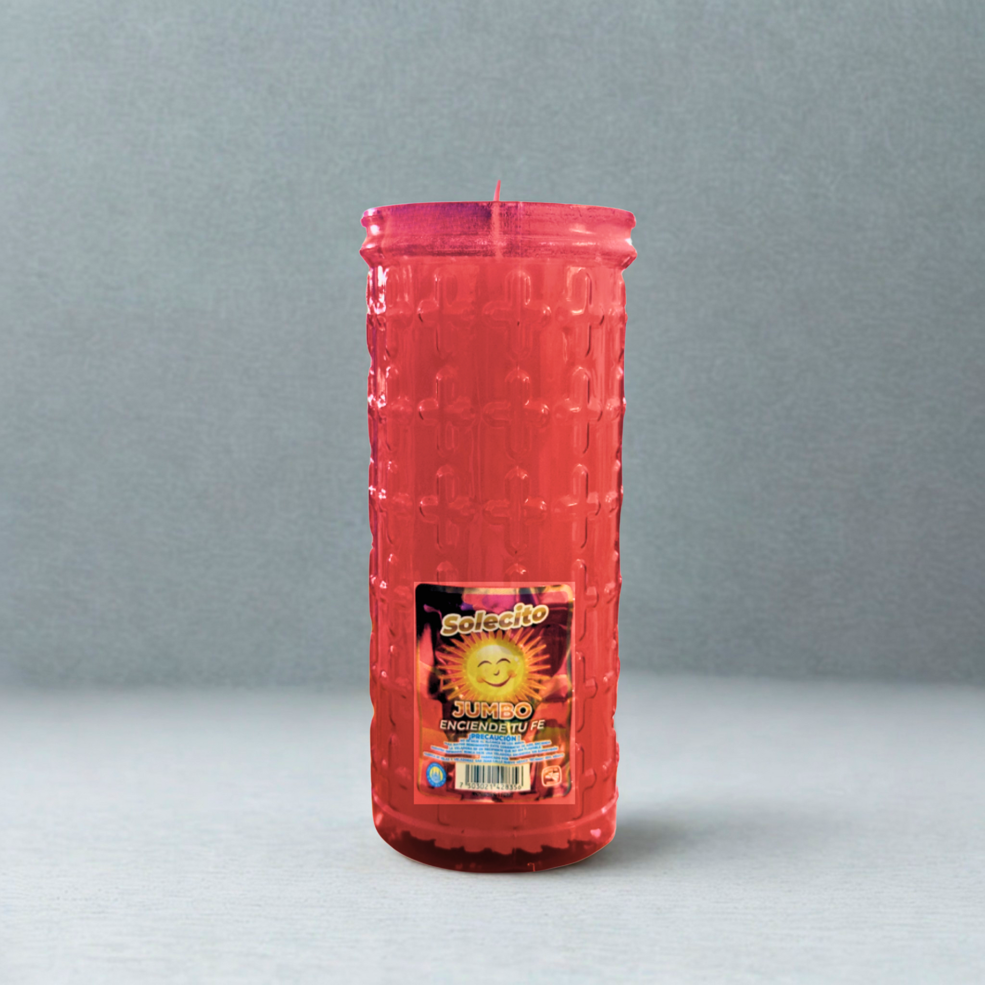 Nuestra veladora Jumbo Solecito es la opción perfecta para quienes necesitan larga duración y economía. Fabricada con parafina rastrada y envasada en un vaso ecológico de plástico resistente, esta veladora está diseñada para ofrecer varios días de iluminación continua, ideal para altares, devociones prolongadas o uso ceremonial.