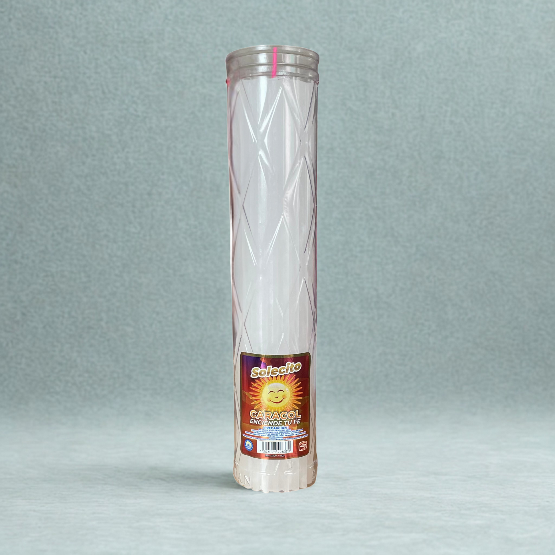 La veladora Caracol Solecito está diseñada para quienes buscan mayor tamaño y duración, sin dejar de lado el ahorro. Elaborada con parafina rastrada de excelente rendimiento y presentada en un vaso ecológico de plástico grueso y resistente, es perfecta para devociones prolongadas, altares comunitarios o espacios de oración que requieren luz constante.