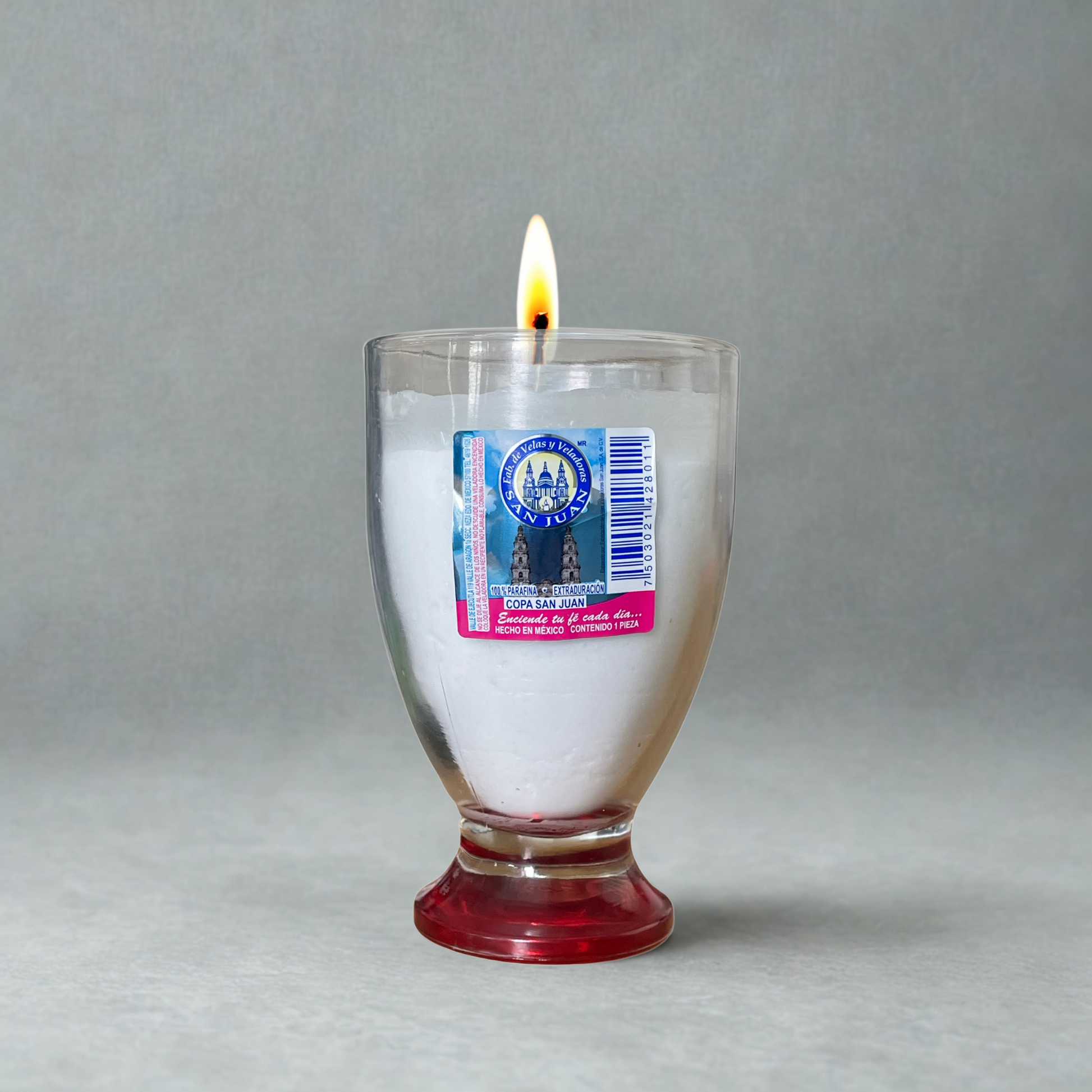 Caja de veladora San Juan Copa Normandía, vaso de vidrio, incluyen 24 piezas, es un mundo de luz y serenidad con nuestra Veladora de Copa Normandía, una pieza de artesanía excepcional que añadirá un toque de sofisticación a cualquier ambiente. Esta veladora es mucho más que una simple fuente de luz; es una obra de arte que combina la tradición y la elegancia en un solo objeto.