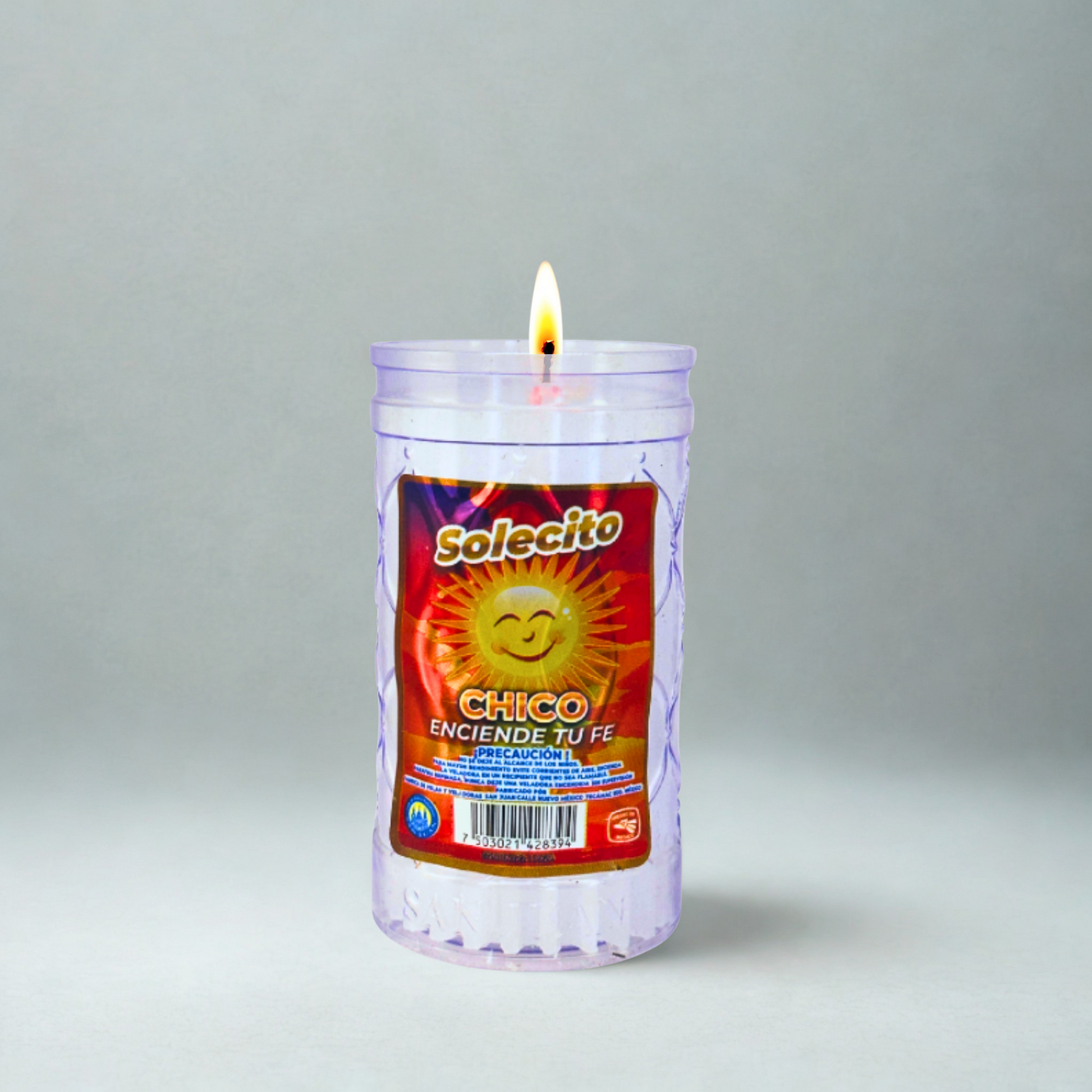 La opción ideal para quienes buscan calidad y economía. Nuestra veladora de media semana Solecito está hecha con parafina rastrada, que ofrece una combustión eficiente a un precio accesible. Viene en un vaso ecológico de plástico reutilizable, resistente y práctico para uso frecuente.